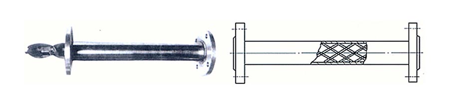 SH單元由雙孔道組成,孔道內(nèi)放置螺旋片,相鄰單元雙了L道的方位錯(cuò)位90度,單元之間設(shè)有流體分配室,它的技術(shù)性能:最高分散程度=1—2um,液—液、液—固相的不均勻度α√ x≤1-5%。